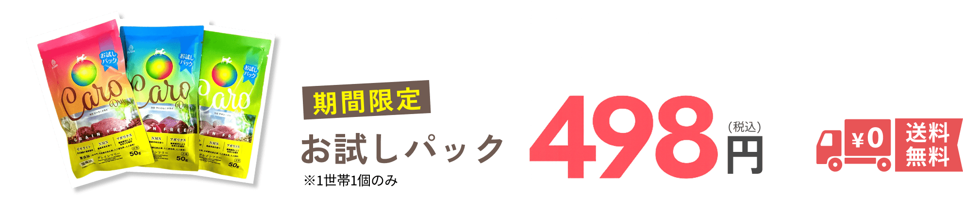 Caroは、穀物不耐性や穀物アレルギーといったリスクに配慮し、小麦・トウモロコシ・オーツ麦・お米などを含まない、消化器にやさしいレシピで仕上げました。