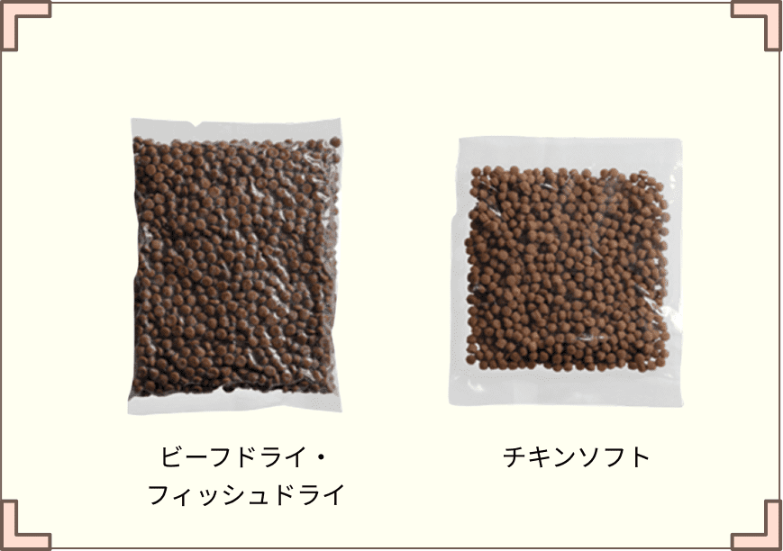 フードの酸化で味わいや品質が落ちてしまうのを防ぐため、脱酸素剤を入れて個包装にすることで、保存料等を使用せずにおいしさを長持ち。新鮮なままお届けできるよう管理しています。また、調理・乾燥・包装までを一貫して国内工場で行うことで、衛生状態を常に一定レベルに保てる環境を整えています。